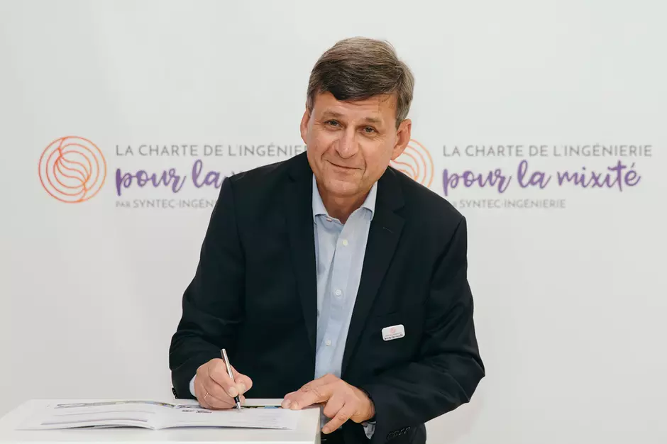 Philippe Bloch, Seureca's General Director signing the Syntec-Ingénierie’s Charter for gender diversity ©Voyez-Vous/Vinciane Lebrun