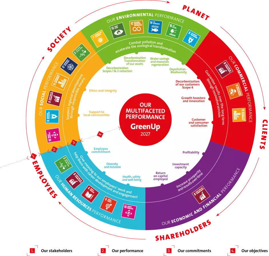 Multifaceted performance, aiming for a balance between 5 dimensions: economic and financial, commercial, social, HR and environmental, is natively at the heart of our projects.