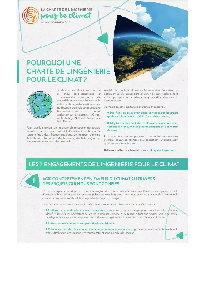 In 2020, we confirmed our commitment to the climate by signing a charter drawn up by our trade federation, Syntec-Ingénierie, for all its members.