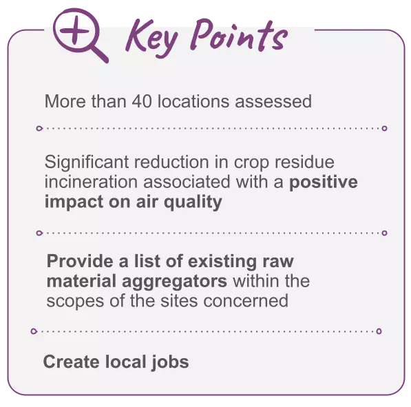 - carry out qualitative and quantitative assessments of the available biomass (rice straw and other convertible biodegradable waste) and the competing uses;