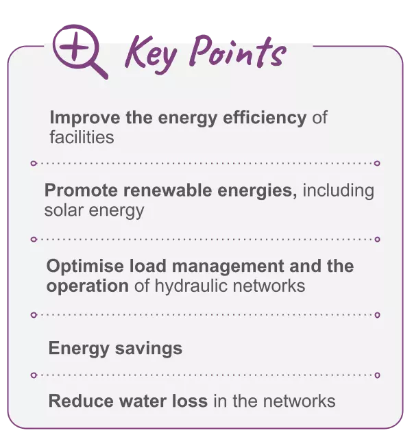 - implementing renewable energy options (potential energy production in wastewater treatment plants, gravity networks or solar power);
