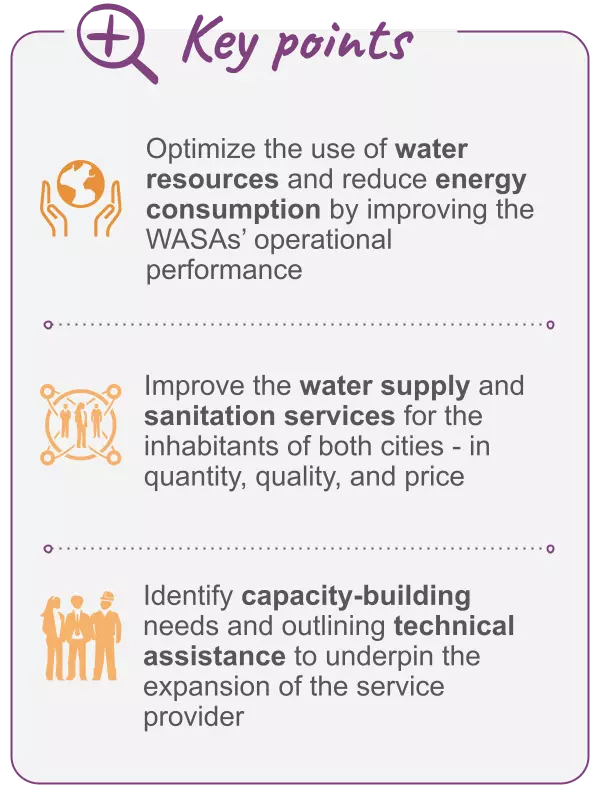 Under a multi-country framework contract with the AFD, Seureca is responsible for carrying out a strategic and operational diagnosis to assist the WASA for each city in developing its action program for performance improvement and capacity-building.