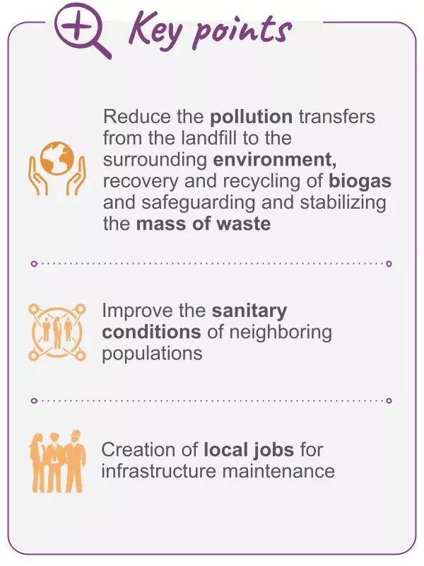 The closure of the landfill, a source of considerable pollution, was a result of both environmental consideration and a determined policy to improve the living conditions of the neighboring population, as well as those living downstream from this highly polluted site. The rehabilitation project was awarded to PFO Africa, which is assisted by Seureca from the design phase through to completion, under a project management contract to rehabilitate some 90 hectares of land occupied by the landfill.