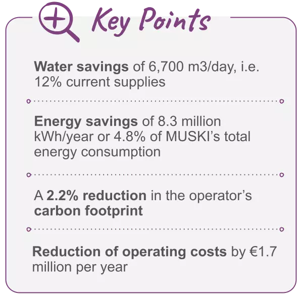 MUSKI supplies water to a population varying from 1 million in the low season to 6 million in the tourist season over contrasting topography reaching 13,000 km².