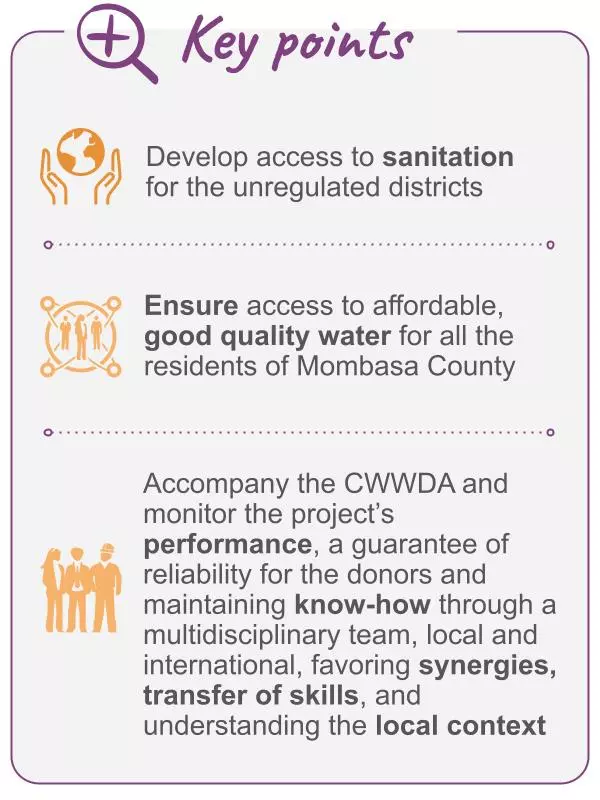 To meet this need, Seureca is accompanying the Coast Water Works Development Agency (CWWDA) for a 5-year period in implementing the «Mwache» program. Jointly financed by the AFD and the World Bank, this program aims to provide the city and its outskirts with an additional 150,000 m3/d of drinking water.
