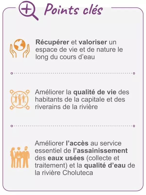 Le système d’assainissement étudié permettra le traitement en première phase des rejets des eaux usées de plus de 1,5 millions d’habitants ainsi que les rejets industriels et commerciaux de la majeure partie des villes de Tegucigalpa et Comayagüela.