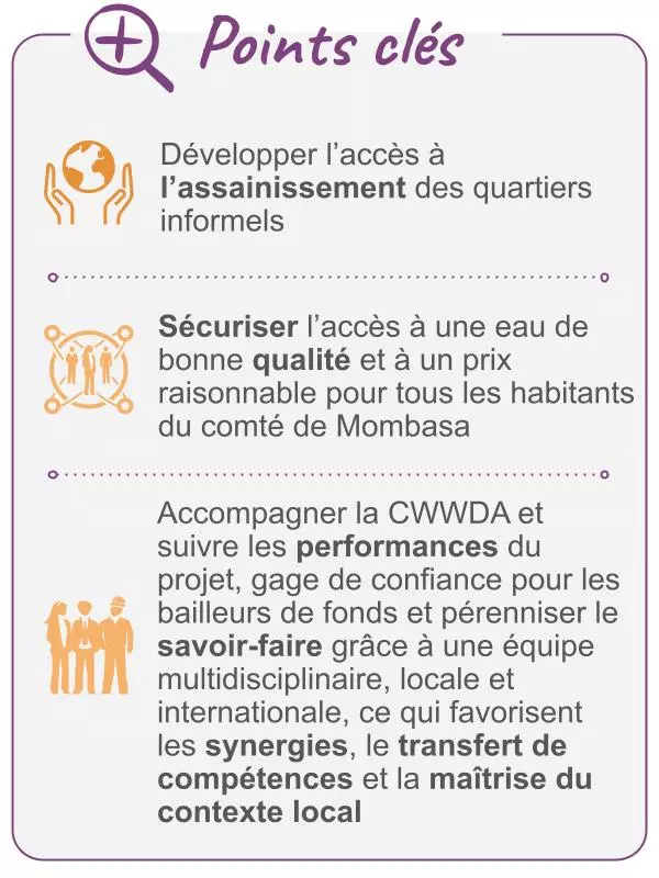 Avec plus d’un million d’habitants, Mombasa est, de par sa population, la seconde ville du Kenya. La ville souffre actuellement d’un grave déficit en eau potable, la demande dépassant très largement l’offre et la variabilité du climat, les sécheresses et les inondations ayant de lourdes répercussions sur la population.