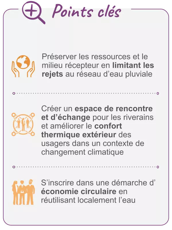 C’est dans ce contexte que la SABOM, en tant que délégataire de Bordeaux Métropole, propose, avec l’appui de Seureca, de tester un dispositif de rafraîchissement urbain en s’inscrivant dans une démarche innovante de développement durable. En effet, le fonctionnement de ce dispositif s’appuie sur l’utilisation des eaux pluviales.