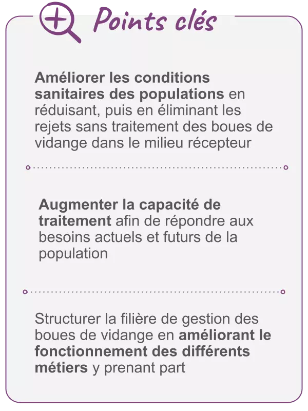Planification des investissements et définition d'un programme de développement d'une filière structurée de la gestion des boues de vidange ;
