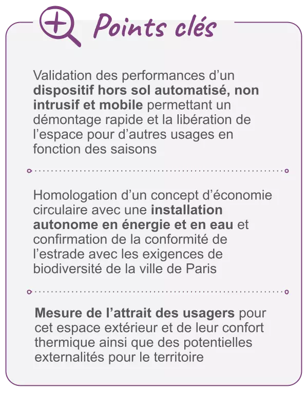 - de tester et valider une solution mobile unique de confort extérieur, autonome en eau et énergie ;