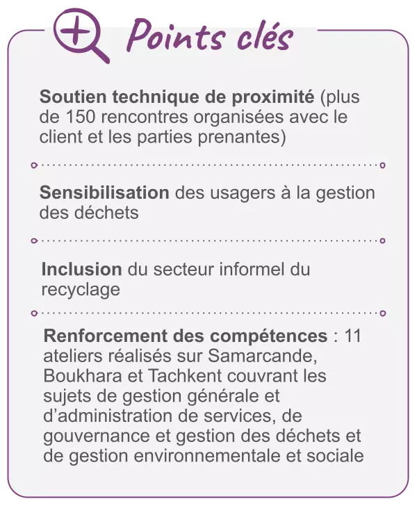La ville de Samarcande, en Ouzbékistan, abrite une population d’environ 600 000 habitants et génère près de 600 tonnes de déchets par jour. Cependant, les équipements de gestion des déchets solides actuels ne répondent qu’à environ 14 % des besoins globaux.