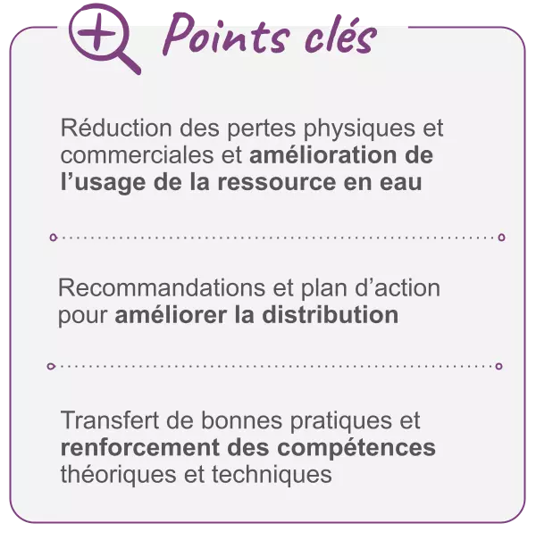 - une formation théorique et pratique sur le contrôle des pertes en eau et un transfert technologique.