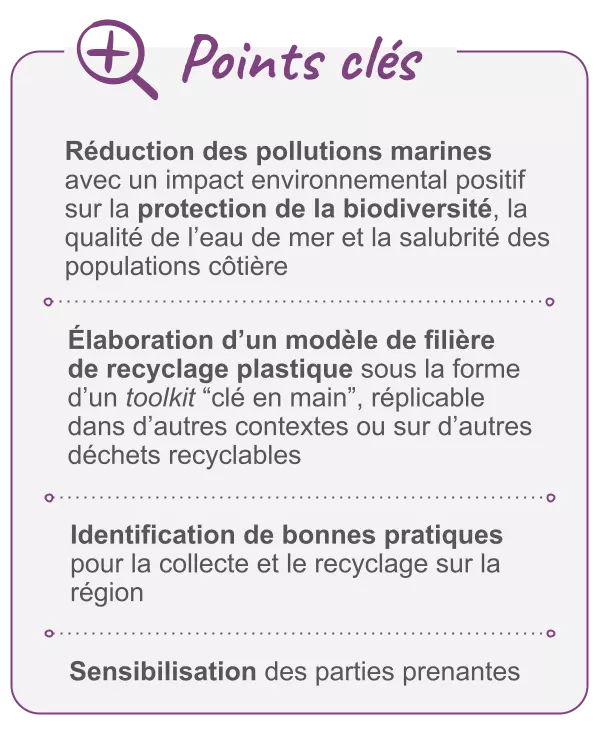 - développement d’un modèle économiquement viable de filière “plastique”, adapté au contexte régional et duplicable à d’autres déchets recyclables ;