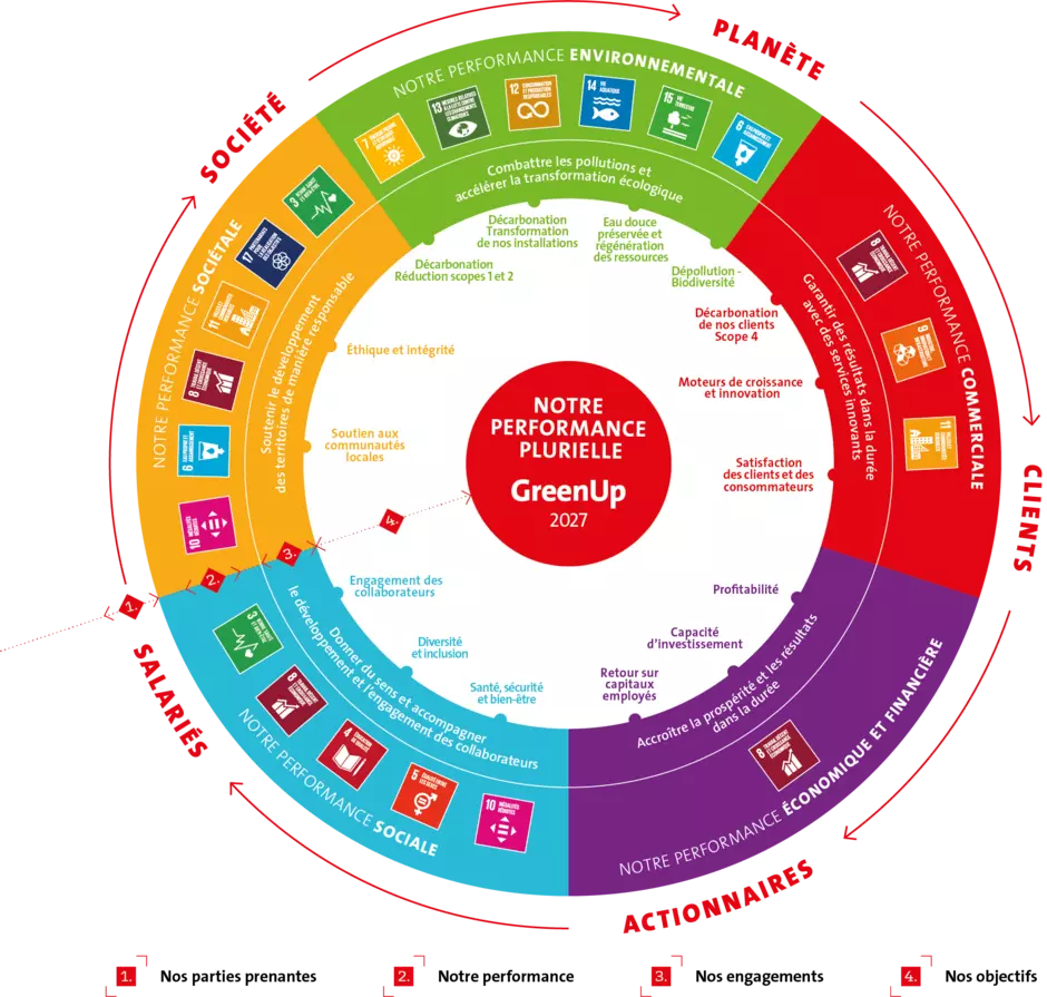 La performance plurielle, visant à l'équilibre entre 5 dimensions : économique et financière, commerciale, sociale, sociétale et environnementale, est nativement au cœur des nos projets et de notre activité.