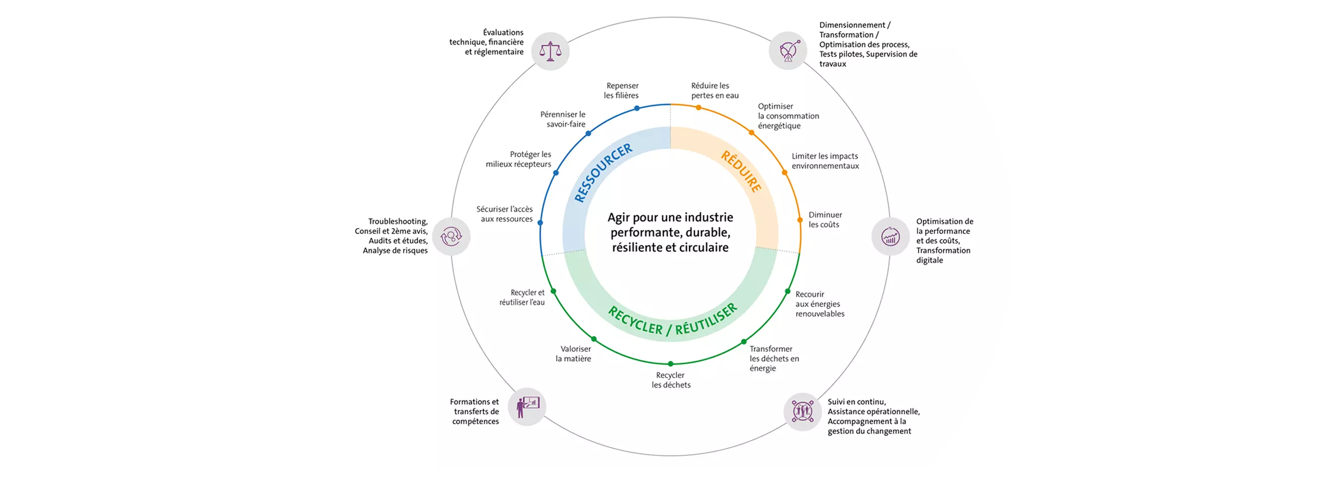 Grâce à son expertise et à sa compréhension approfondie des enjeux liés à l'eau dans le contexte industriel, notre équipe accompagne les clients dans l’optimisation de leur consommation d'eau, la conception des ouvrages, la réduction de leur empreinte environnementale et la recherche d’alternatives pour une meilleure gestion de la ressource en développant des solutions innovantes et durables.